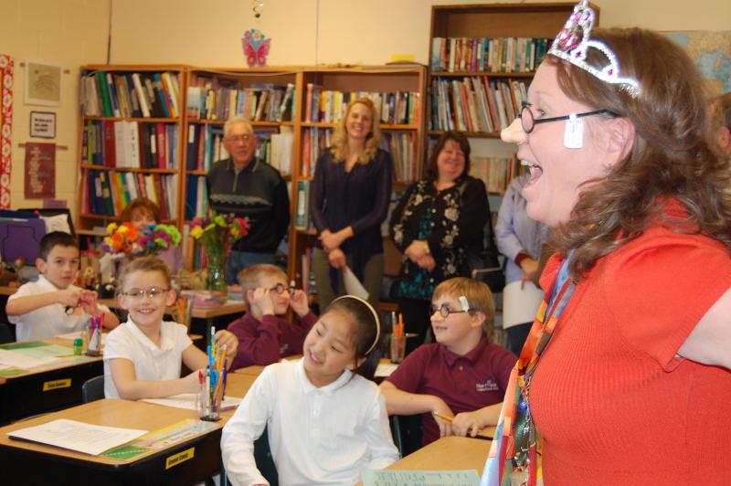 Only her hubby could barge into her classroom while she was teaching with an entourage of groupies to celebrate with panache! Thankfully the youngest was home for break from college so he and his best bud could sing a little song.
